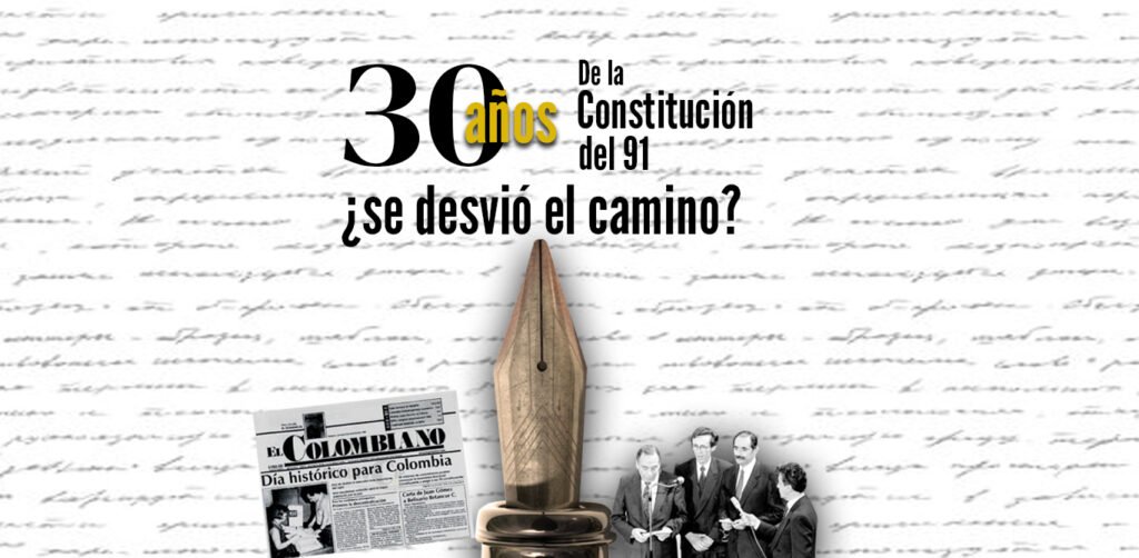 Sí, se cumple la tercera década de la promulgación de la Constitución Política de 1991: un texto que sobre la mesa ha servido de ejemplo, y que en la historia representa una apuesta por unas reformas progresistas que se proponían en dicho año, luego de que la configuración política, social, económica y cultural del país hubiera tenido como eje una Constitución que se mantenía vigente desde hace casi un siglo (1886) y que había surgido en un periodo autoritario, centralista y teocrático, bajo el liderazgo de Rafael Núñez y Miguel Antonio Caro.