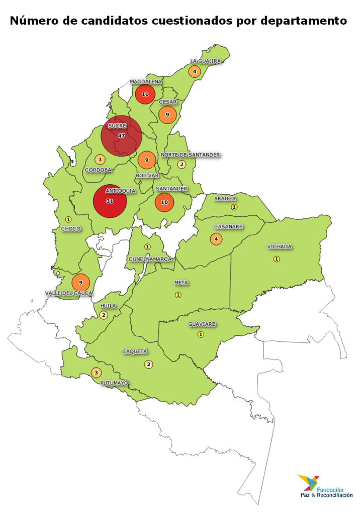 Candidatos cuestionados por departamentos