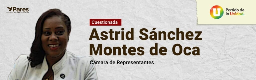 Cuestionamiento: Astrid es heredera del ‘Clan de los Sánchez Montes de Oca’. Es hija del patriarca Rafael Sánchez, cabeza del clan,que desde mediados de los 90 consolidó su poderío en el departamento del Chocó . Rafael Sánchez fue cofundador, en la década de los 70, del movimiento liberal popular, y lo lideró en el corregimiento de Samurindó, Quibdó, donde era director de una escuela rural. Astrid fue electa en el Congreso, sin haber ocupado ningún cargo de elección popular, gracias al capital político de sus hermanos Patrocinio y Odín. Patrocinio Sánchez Montes de Oca fue hallado culpable, por la Corte Suprema de Justicia, del delito depeculado culposo en su gestión como alcalde de Quibdó , relacionado con la ejecución del contrato de la Alcaldía para la prestación de servicios de salud por un monto de 150 millones de pesos.