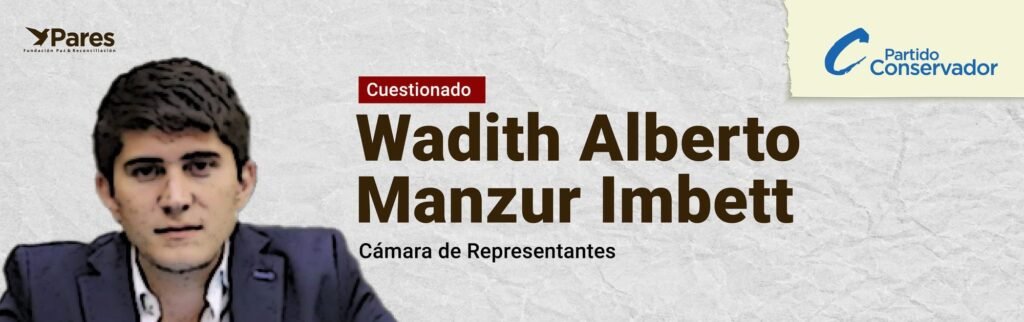 Cuestionamiento: Es heredero del caudal electoral de su padre, Julio Manzur Abdala, capturado en 2015 en medio de una investigación por presuntos nexos con las AUC. Desde 2020, Manzur se sometió a la JEP, por lo cual este tribunal tiene actualmente este caso.