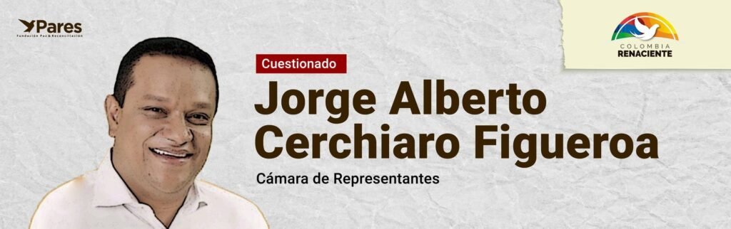 Es candidato por Colombia Renaciente. Fue alcalde deBarrancas en el periodo 2016-2019. De acuerdo con fuentes en territorio, Jorge Cerchiaro es primo de Francisco ‘Kiko’ Gómez, ex gobernador de la Guajira condenado por homicidio.