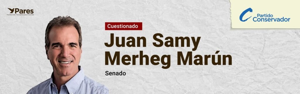 Cuestionamiento: Es hermano de Habib Merheg Marun, senador que presuntamente es señalado de haber tenido nexos con paramilitares y por la posibleadjudicación irregular de tierras baldías en Vichada. En el 2010, Habib Mergeh estuvo prófugo por la investigación y sólo hastael 2019 regresó al país. En el 2020 el proceso por nexos con paramilitarismo, adjudicación irregular de tierras y desplazamiento forzado fue remitido a la JEP.