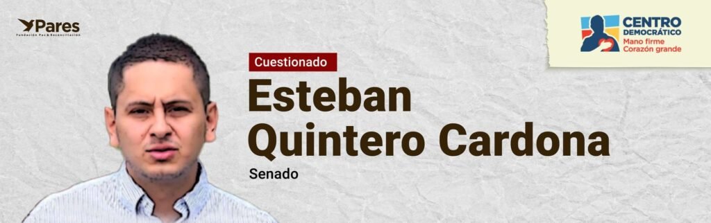 Cuestionamiento: Es hijo del parapolítico Rubén Darío Quintero, excongresista condenado a 90 meses de prisión por tenervínculos con el Bloque Elmer Cárdenas de las AUC . Rubén Quintero pidió ser incluido en la Justicia Especial de Paz (JEP), pero esta ordenó laterminación de la solicitud en noviembre de 2019.