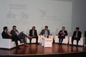 En la Foto: Carlos Medina viceministro de Justicia, Luis Fernando Velasco presidente del Senado, Elber Gutiérrez jefe de redacción del…