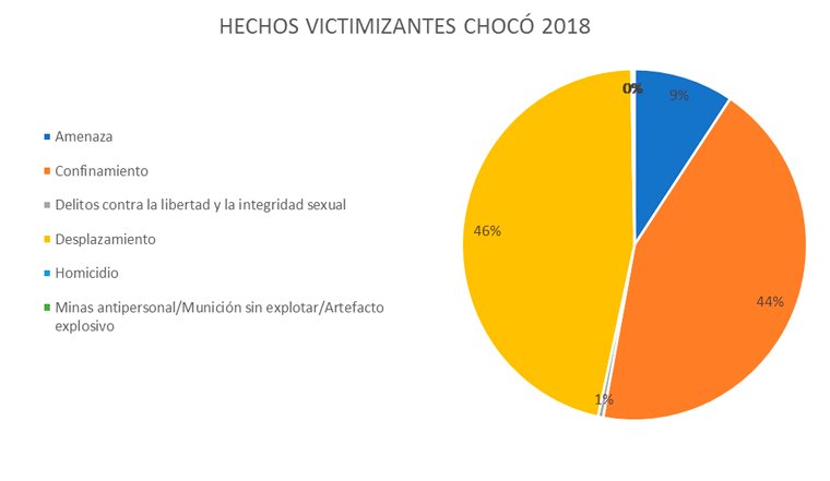 Sobre el departamento del Chocó, entre 2016 y 2018—a dos años del Acuerdo de Paz— se han perpetrado 28.651 casos de desplazamiento forzado.