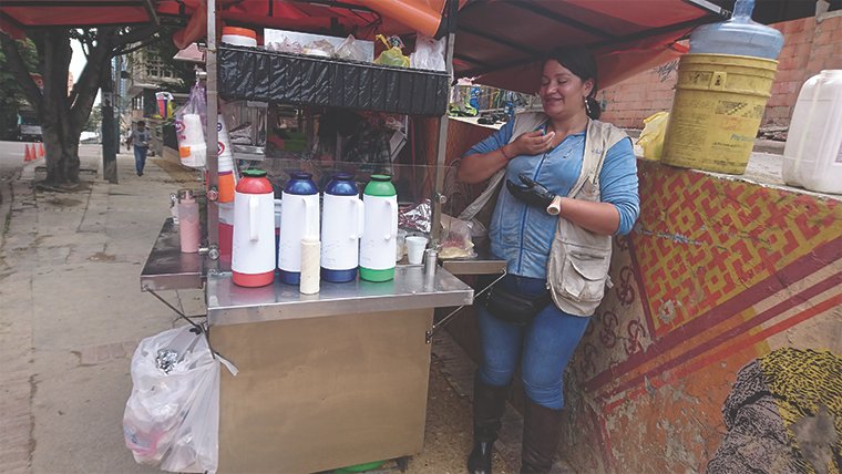 “Acá llevo trabajando 6 años y llevo 23 años trabajando. Antes vendía solo tintos, pero ahora intento vender lo que sea. El trabajo en la calle es duro, claro, pero no he sufrido de machismo afortunadamente, por eso no me quejo”, relata.