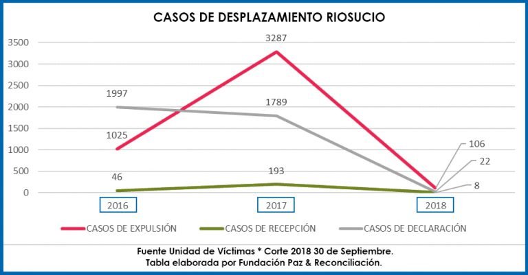 Para el investigador Alejandro Jiménez, de la Fundación Paz & Reconciliación, la situación en Riosucio es muy compleja, ya que el desplazamiento continúa aún sin la presencia de la exguerrilla de las FARC y debido a lasamenazas y asesinatos a líderes y lideresas sociales.