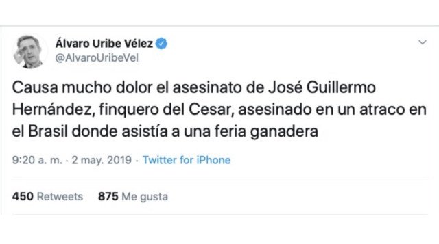 Ñeñe´ Hernández fue asesinado en mayo pasado en Uberaba, estado de Mina Gerais (Brasil), en circunstancias imprecisas que han sido presentadas como un intento de robo. ´Ñeñe´, de acuerdo con autoridades colombianas y de Estados Unidos, era socio del narcotraficante y asesino Marcos Figueroa, hoy preso en Colombia y en juicio. Una vez se conoció la muerte de ¨Ñeñe´, Uribe Vélez fue el primero en Colombia en deplorar el hecho.