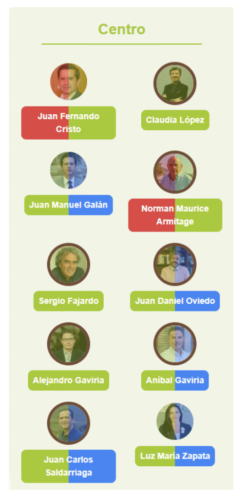 Para nadie es un secreto que dentro de este sector son dos los nombres que despuntan, por un lado, aparece la exmandataria de Bogotá, Claudia López, quien, tras culminar su mandato en la capital, emprendió su campaña presidencial por todo el país y asumió un papel de critica constante al gobierno de Gustavo Petro, esto le permitió proyectarse como una precandidata fuerte, pues en las encuestas figuraba entre los primeros lugares.