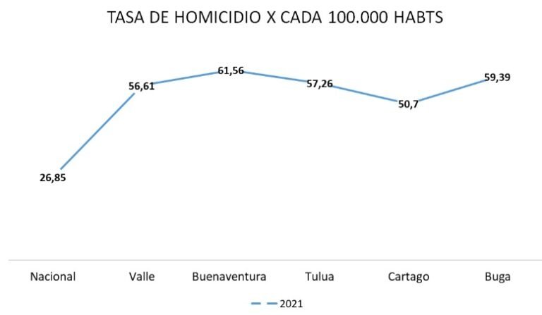 En comparación al año pasado, los homicidios tuvieron una disminución significativa durante los primeros 6 meses de 2022. De acuerdo con la Secretaría de Convivencia y Seguridad Ciudadana del Valle del Cauca “hay una reducción del 3% en lo que corresponde al homicidio en el departamento del Valle del Cauca, a nivel general. Así mismo, una reducción del 22% en lo que corresponde a homicidios en cascos urbanos, principalmente en ciudades como Palmira, Cartago, Tuluá, Buenaventura y Cali”, en comparación al mismo periodo del año anterior.
