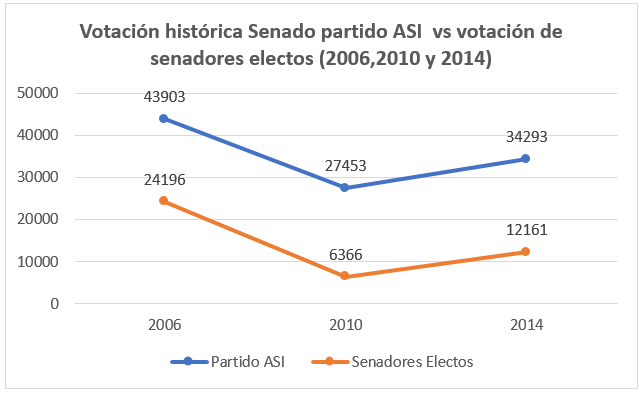 Como se mencionó anteriormente, ASI no tiene grandes cuadros políticos que figuren en el panorama nacional o local; por el contrario, es una colectividad que se ha dedicado a mantener su personería jurídica a través de la entrega de avales, apostando desde 2006 hasta 2014 a que sus principales candidatos ocupen la curul indígena en el Congreso. Aunque en 2006 su senador representó el 55,11% del total de los votos, en 2010 el 23,19% y en 2014 el 35,46%, sus vocerías no hicieron eco en el Senado y su caudal electoral se mantuvo entre los 27.000 y 44.000 votos (suficientes para mantener la personería jurídica y recoger los réditos en las elecciones locales).
