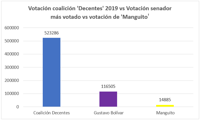 Por lo tanto, en 2018 se vio que, al renunciar a su aspiración a la curul indígena, la alternativa para conservar su curul en Senado fue integrarse a la lista de ‘Decentes’ debido a que, con las votaciones obtenidas en 2018, la tendencia en el número de votos que venía obteniendo el partido no habría sido suficiente para conservar la personería jurídica. Aunque resulta difícil calcular cuántos votos aportó el partido en las elecciones de 2018, Jonatan Tamayo —que fue el tercer senador más votado de la lista— tan solo obtuvo 14.885 votos, es decir el 2,84% del total de la lista, viéndose beneficiado por la votación obtenida por Gustavo Bolívar.