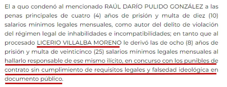 Condena contra Licerio Villalba Moreno