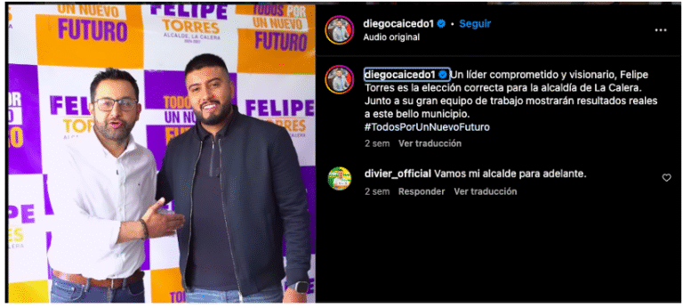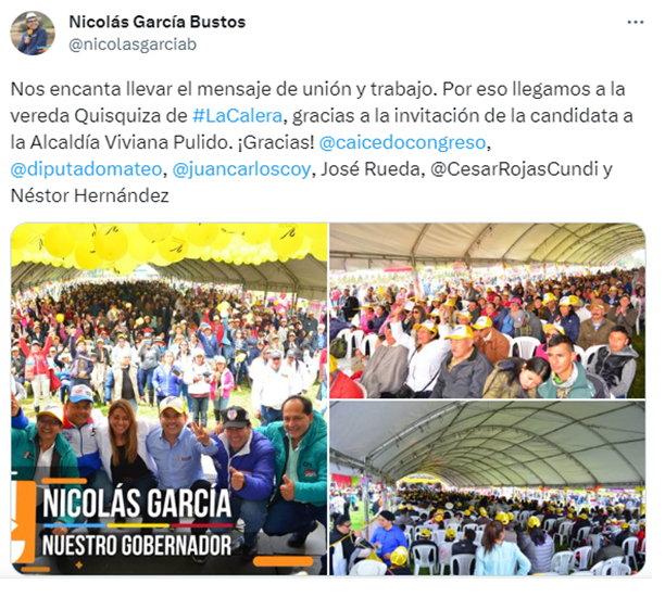 Publicación del entonces candidato a la Gobernación de Cundinamarca, Nicolás García, apoyando la aspiración de