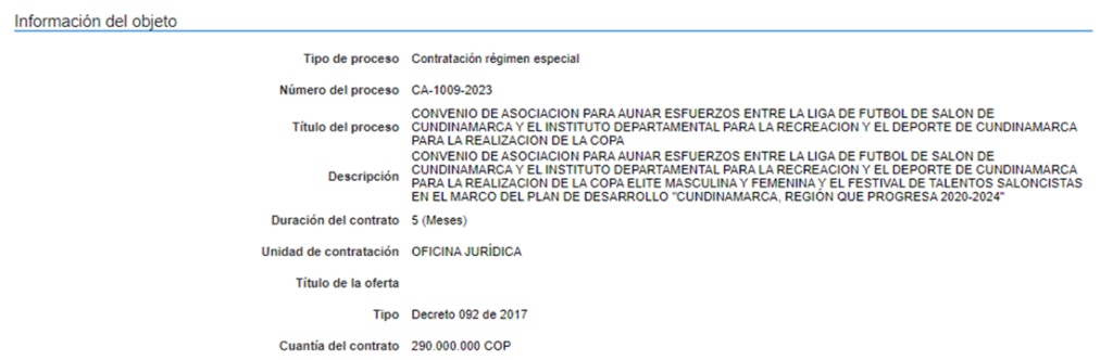 Información del Secop sobre el Contrato de Asociación