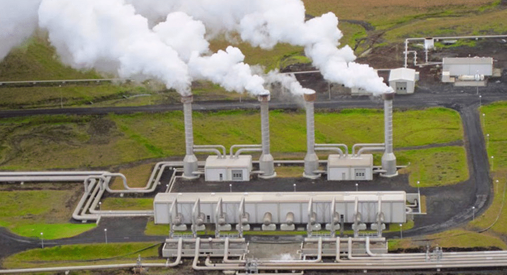 Aunque generalmente baja en emisiones, la energía geotérmica puede liberar gases traza como el sulfuro de hidrógeno y causar impactos locales como el hundimiento del terreno si no se gestiona adecuadamente la reinyección de agua. También puede liberar metales pesados como arsénico, boro y plomo al suelo y agua cercana. La huella de carbono de las plantas geotérmicas convencionales oscila entre 15 y 24 g CO₂-eq./kWh.