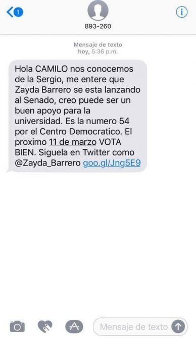 Los mensajes llegaron desde la dirección de la agencia Loor, que manejaba la cuenta de la candidata. Ante esta situación, Zayda Barrero le respondió a La Silla Vacía que “es una infamia lo que están haciendo (con las bases de dados). No ha habido ninguna directriz en ese sentido. No hemos hecho ni una sola publicidad. Ni siquiera hay un cartel”. Además, dijo que, pese a que sí contrató una agencia de comunicaciones, “no me piden permiso para enviar mensajes y hacer la campaña”.
