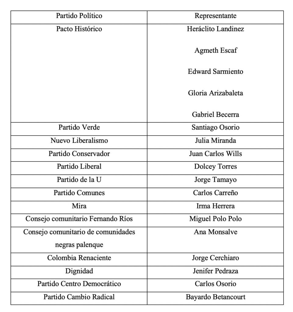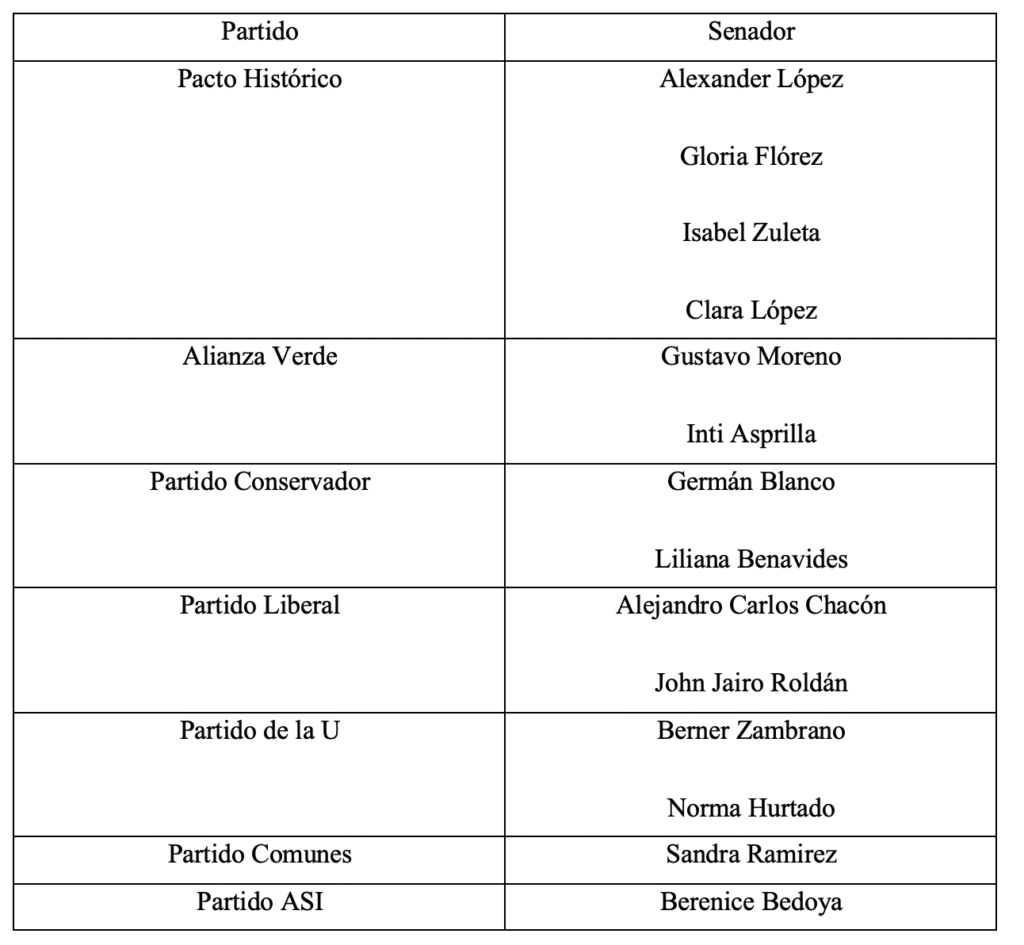 La convocatoria incluía a los senadores Jorge Benedetti y Carlos Jiménez de Cambio Radical y Honorio Henríquez y Enrique Cabrales del Centro Democrático, quienes desde el momento inicial se apartaron de la comisión accidental.