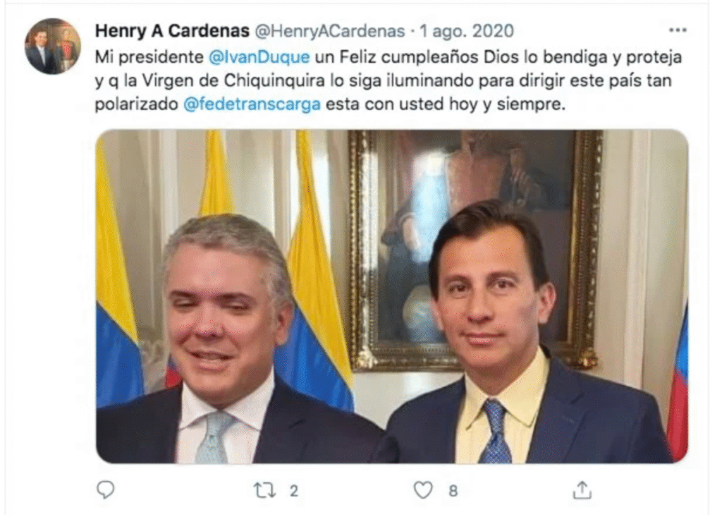 Cárdenas después explicaría que el mal genio de su papá se debía a que acababa de recibir unos exámenes médicos donde le notificaban una mala noticia. Se empezó a conocer quienes eran los Cárdenas, una familia que había dedicado buena parte de su vida al transporte de carga. Desde el 2016 Henry Cárdena está al frente de Fedetranscarga. En ese momento tuvo mucha exposición mediática y tuvo que salir a su defender a su padre en estos términos: “Este incidente ha hecho que en las redes sociales me califiquen a mi de paraco, de traqueto, cuando mi papá ha trabajado toda la vida muy duro para tener todo lo que tiene. Se ha esforzado para generar empleo en Colombia”. En ese momento el presidente de Fedetranscarga pedía que se le asegurara al ciudadano colombiano la garantía para movilizarse. Tres años después, paradójicamente, él lidera el paro camionero que tiene paralizado al centro del país.