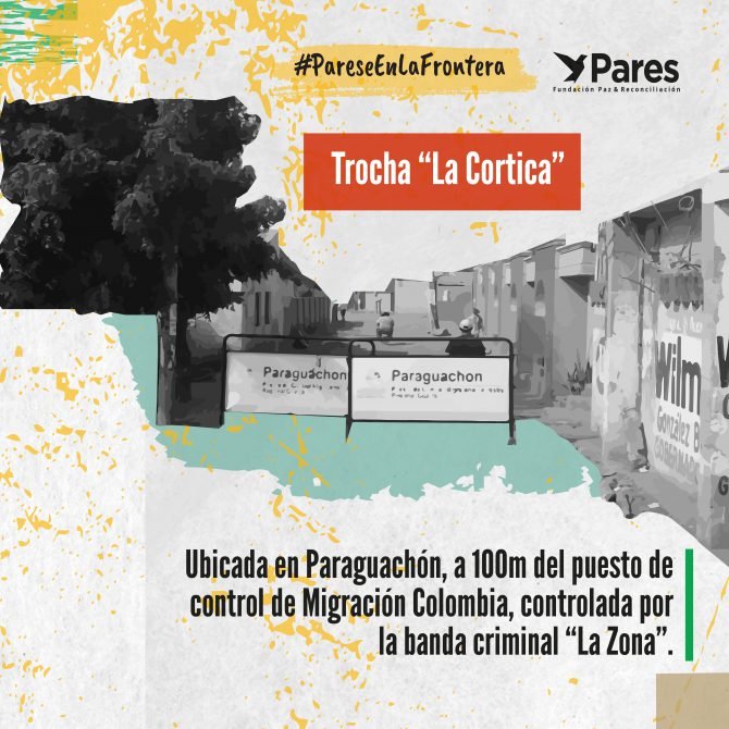 En el Puesto de Control Migratorio, localizado en el corregimiento de Paraguachón, es donde se encuentran las autoridades migratorias y donde hay constante presencia de Fuerza Pública; pese a eso, a 100 metros de este puesto se encuentra la trocha ´La Cortica´, que si bien fue “clausurada” en 2019 por autoridades colombianas, varias fuentes en territorio confirmaron que esta sigue siendo una de las más transitadas por migrantes.