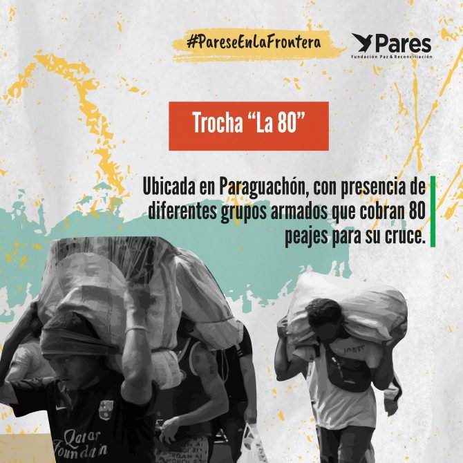 La trocha conocida como “La 80” también se encuentra en el corregimiento de Paraguachón y, de acuerdo con la información dada por migrantes que han utilizado este paso, se les conoce así debido a los 80 peajes ilegales que hay que pagar durante el trayecto. Varias de las personas entrevistadas manifestaron que en esa trocha ejerce control un grupo armado que tendría nexos con el gobernador del Zulia Omar Prieto, a quien portales como TalCual Digital en Venezuela, han señalado de al parecer tener conocimiento de la creación de grupos armados en la frontera.
