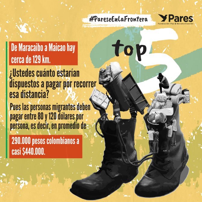 Pares entrevistó diversos migrantes venezolanos en los que se pudo establecer que el valor para llegar desde Maracaibo a Maicao oscila entre los 80 y 120 dólares por persona, donde estos precios pueden variar de acuerdo con la cantidad de retenes que se tengan que cruzar y el tipo de transporte al que se acceda.