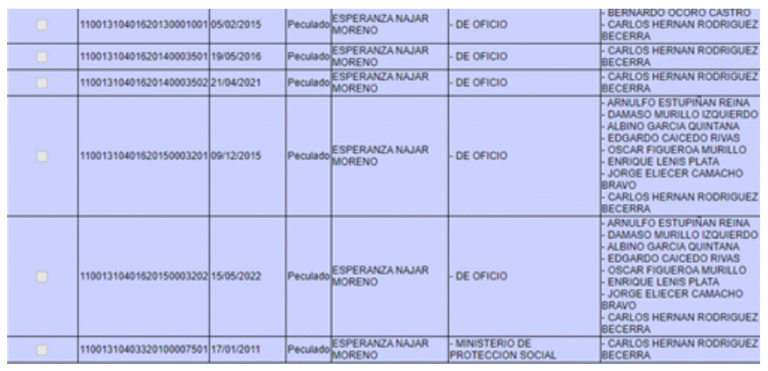 Comoya había señalado la Fundación Paz & Reconciliación (Pares) , de la lista de final destacan algunos nombres por irregularidades que los acompañan. Uno de ellos es Andrés Castro, excontralor de Bogotá y cercano a Juan Carlos Granados, señalado de beneficiar a Odebrecht; y Carlos Fernando Pérez, excontralor de Santander, señalado de ser hombre de confianza y cercano a Hugo Aguilar, condenado por parapolítica, enriquecimiento ilícito, lavado de activos, y al clan Aguilar. Además, la Fiscalía notificó que tieneprocesos inactivos por los delitos de concierto para delinquir, inasistencia alimentaria y amenazas.