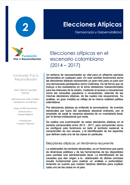 Se realiza una examinación de estas elecciones atípicas en el periodo comprendido entre 2014 – 2017, para comprender como se configura este fenómeno en todo el territorio nacional, la comprensión de sus causas, y la identificación de los aspectos que definen cada uno de los casos en particular.