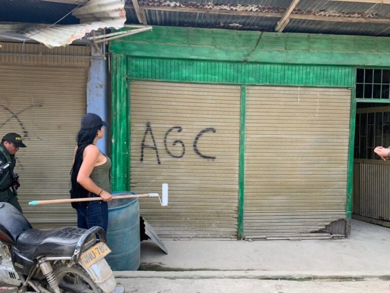 Pares Pacífico y la plataforma Convergencia por la Paz hablaron con Claudia Cabrera Tarazona, alcaldesa de Policarpa. Después de los combates que se presentaron el fin de semana, la funcionaria decidió recorrer la zona, bajar las banderas de los grupos armados y borrar los letreros y consignas que dichas organizaciones al margen de la ley pintaron en el territorio.