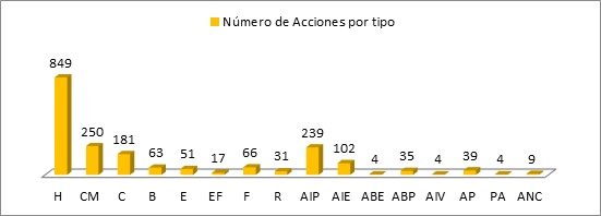 La siguiente gráfica muestra el tipo de acción en la que se distribuyeron las 91 acciones realizadas durante la duración de la tregua.