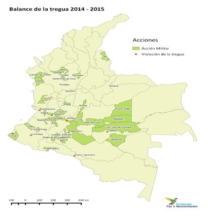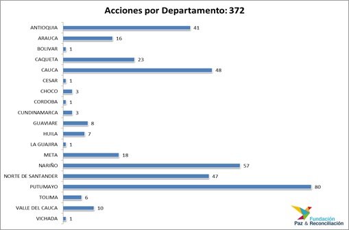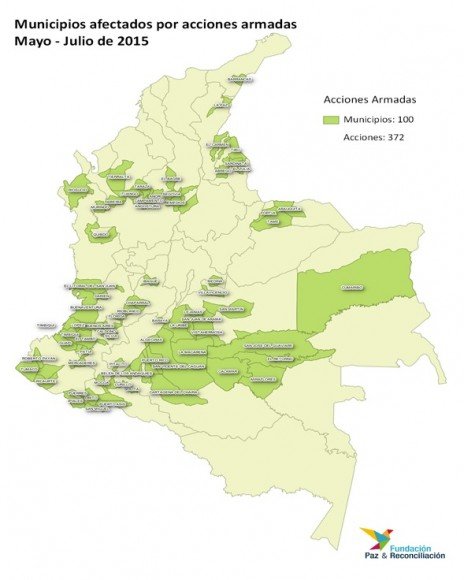 Desde el 22 de mayo de 2015, momento en que se levantó la tregua unilateral decretada por las FARC en diciembre de 2014, varias regiones del país han estado sumidas en una crisis humanitaria debido a las repercusiones de las acciones armadas. En total 372 acciones armadas.