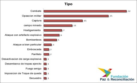Una vez levantado el cese unilateral declarado por las FARC el 22 de mayo de 2015, el número de acciones armadas fue incrementándose paulatinamente. El país se había acostumbrado a la paz, y reaccionó fuertemente ante el incremento del accionar militar por parte de las FARC. La siguiente gráfica muestra el tipo de acción militar que se produjeron durante estos dos meses: