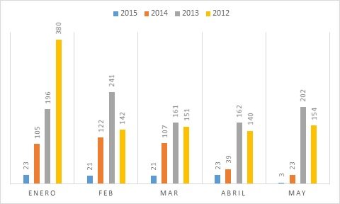 Al comparar los primeros 5 meses desde el año 2012 hasta el año 2015, se pueden apreciar los siguientes datos.