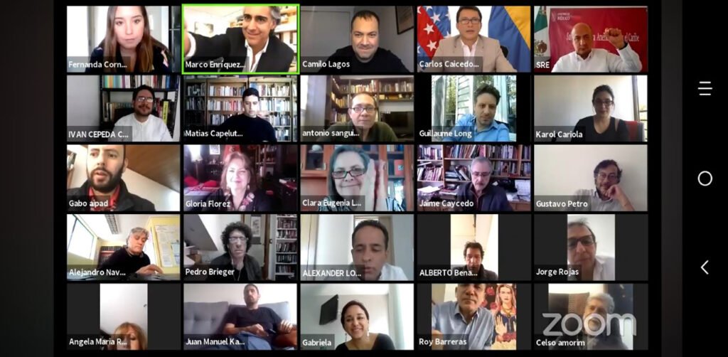 El evento reunió alrededor de cuarenta (40) personas, quienes discutieron acerca de las medidas que urgen tomar en América Latina frente a la crisis generalizada como resultado del Covid-19, pero también relacionadas con escenarios de paz y económicos.