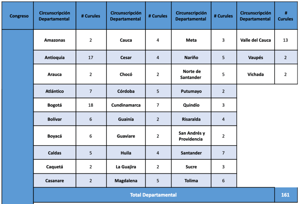El próximo Congreso de Colombia estará conformado por 296 curules distribuidas de la siguiente manera: