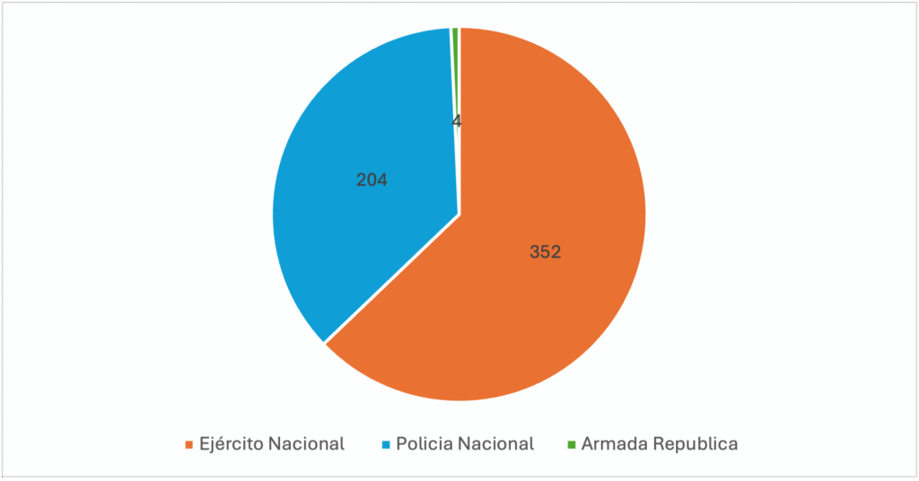 Ilustración 1. Afectaciones por instituciones Enero -Julio 2025. Fuente: Ministerio de Defensa. Elaborado por: Fundación Paz & Reconciliación.