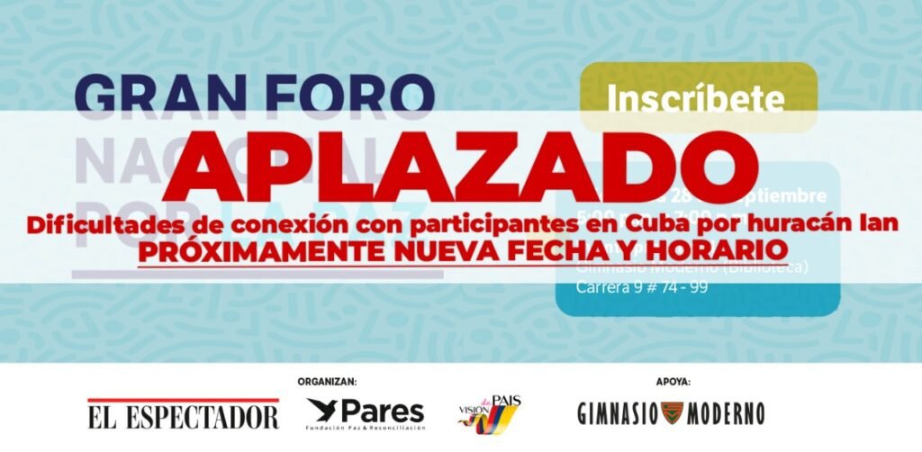 Actualización, miércoles 28 septiembre 2022/ Este evento se encuentra aplazado por razones de dificultad de conexión de los participantes Pablo Beltrán y León Valencia, quienes se encuentran en La Habana, Cuba, con problemas de conexión e internet causados por el huracán Ian. Próximamente la Fundación Paz & Reconciliación, El Espectador y Visión de País, anunciarán nueva fecha y lugar.