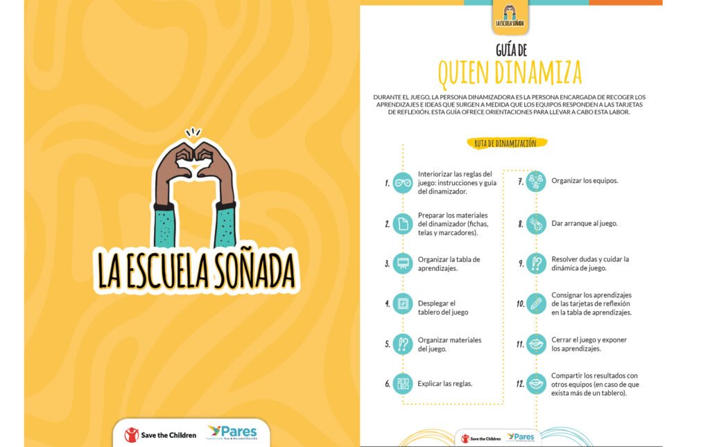La Guía del Dinamizador es el material de apoyo que orienta a la persona encargada de facilitar el desarrollo del juego La Escuela Soñada. Aquí encontrarás los pasos, recomendaciones y herramientas necesarias paraconducir las actividades, promover la participación y recoger los aprendizajes de cada grupo.