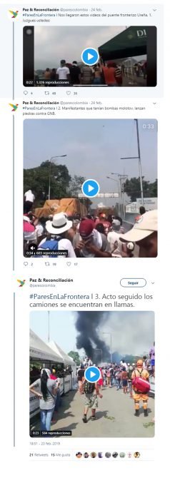 El 24 de febrero, Pares recibe unos videos que mostraban los hechos desde un ángulo distinto al de grandes medios comunicación que insistían en que los ataques y el fuego venían de la Guardia Bolivariana. En estos videos se ve cómo unos jóvenes que están del lado colombiano del puente, preparan bombas molotov con botellas, gasolina y mechas.