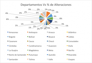 Gráfica 1. Departamentos vs % de Alteraciones.