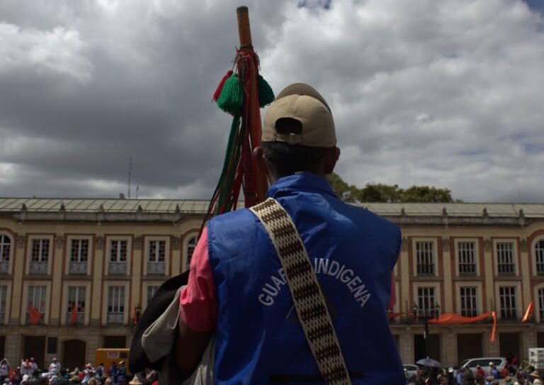 «Las mujeres indígenas hemos estado muy activas, no solamente en la Minga, sino en los encuentros permanentes que hacemos los pueblos ancestrales al interior de las comunidades. Nosotras jugamos un papel fundamental, somos guardia, autoridades y también líderes de procesos de negociación. Para donde usted mire, ahí estamos las mujeres.»