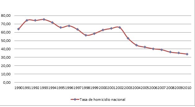 Tasa de homicidio en Colombia 1990 – 2010