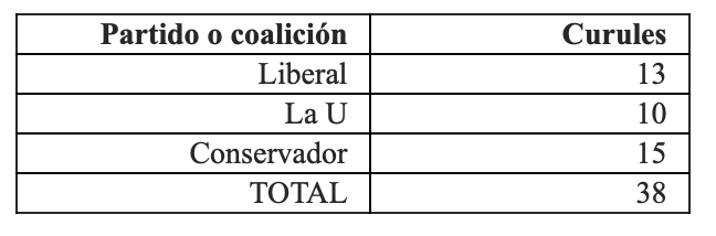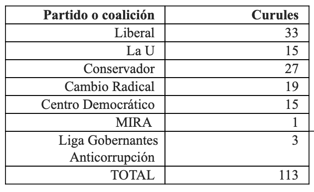Entre liberales, conservadores y la U suman 75 representantes (el 51%), que hoy están dentro de la coalición de gobierno. Sin ellos, la coalición de gobierno quedaría conformada por 70 representantes. Sumando al conservatismo, que es el que tiene más curules en Senado de estos tres partidos, pero no en Cámara, la coalición quedaría conformada por 97 representantes.
