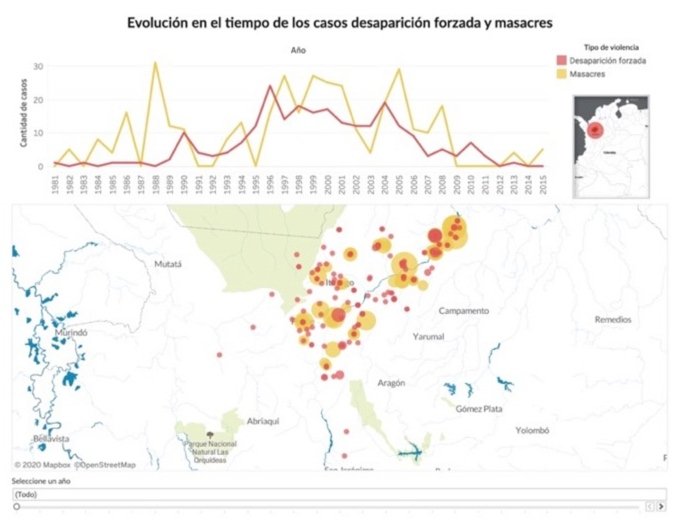 Evolución de las desapariciones y masacres en la zona de influencia de HidroItuango. Mapa elaborado por JEP.