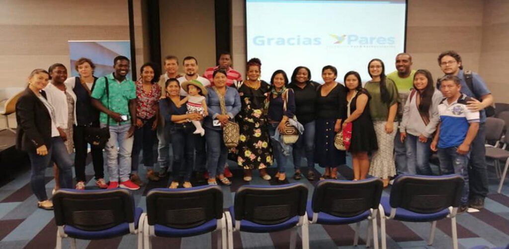 Además de un público diverso y cualificado, se contó con la presencia de invitados e invitadas nacionales que vienen trabajando desde los territorios por la construcción de paz, con el objetivo de realizar un intercambio de experiencias, especialmente entre los líderes de procesos juveniles afrodescendientes en Buenaventura, mujeres lideresas indígenas Nasa del municipio de Toribío-Cauca y delegaciones de defensores y defensoras de DD.HH de Cali y Jamundí.