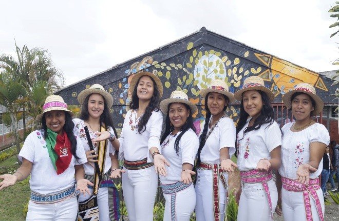 “Mediante el arte podemos poner nuestro punto de vista, y como ustedes saben, la música es un lenguaje que traspasa fronteras, que cualquier persona lo puede sentir”, destaca Jeimy Valencia, mujer indígena nasa que hace parte de la agrupación musical Memnxi Kiwe; una iniciativa que tiene alrededor de un año dentro del Tejido Mujer de la Asociación de Cabildos Indígenas del Norte del Cauca (Cxhab Wala Kiwe- ACIN). Por su parte, Michel Stiven Lucumi, joven artista afrodescendiente, director de la Fundación Artística y Cultural Carimba, explica que en su labor «no solo se forman seres artísticamente, estamos formando seres capaces de vivir en paz con el mundo”.