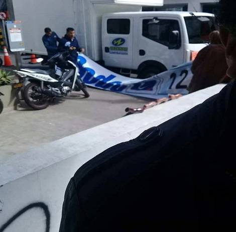 Pero hay más. Un segundo ejemplo es que en Pasto se lograron tomar fotos donde se puede ver a los funcionarios de Cedenar colocando pancartas de apoyo a Paredes. Como se ve a continuación: