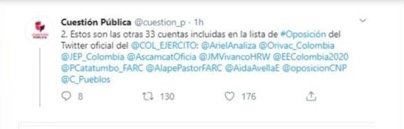 De hecho, explica, nosotros estamos en la lista de organizaciones que aparecimos perfiladas en la lista que publicó el Ejército Nacional en su cuenta de twitter. Nos matan gente nuestra en la zona más militarizada de Norte de Santander que es el municipio de Tibú.