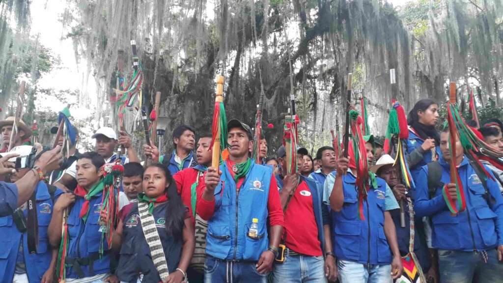 “Soñábamos e idealizábamos, como mujeres nasa, que con la firma de los acuerdos esto iba a mejorar, íbamos a poder trabajar nuestras huertas, pero esto no ha sucedido, ha cambiado es la forma de operar la guerra en estos territorios, ahora vemos más militarización de actores legales e ilegales que disputan el control territorial, hay más reclutamiento de jóvenes y niñas, y hay incremento en los cultivos de uso ilícito; y nosotros como pueblo nasa, como guardia estamos en el centro haciendo resistencia”, señala una lideresa de la Acin.