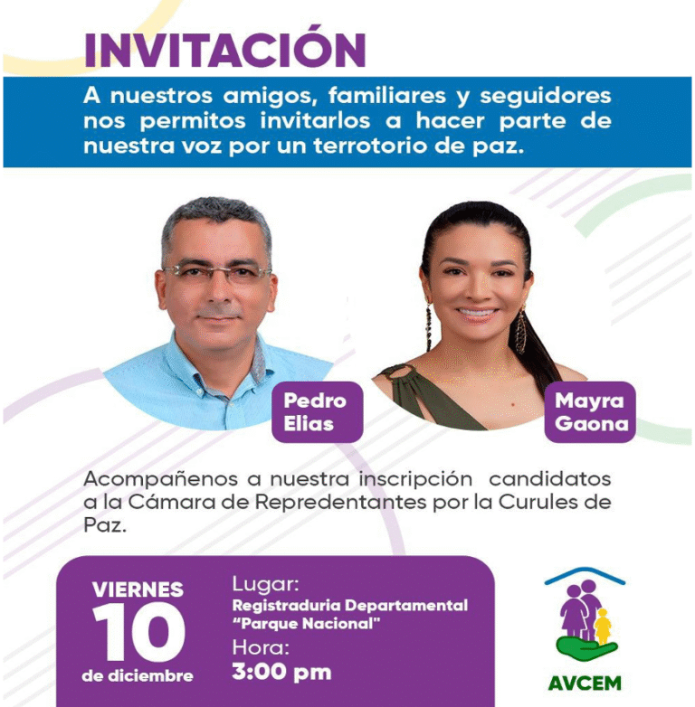 La Asociación de Víctimas Caminos de la Esperanza del Corregimiento de las Mercedes(AVCEM), para las circunscripciones especiales para la paz (CTEP), está a punto de inscribir en la lista de Catatumbo a los candidatos Pedro Elías y Mayra Gaona, quienes se encuentran presuntamente inhabilitados para participar en está contienda.